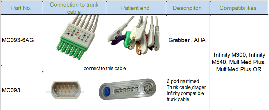 سازگار با Draeger Infinity M300 ECG Leadwire - MS16547 6-POD ECG ledwire