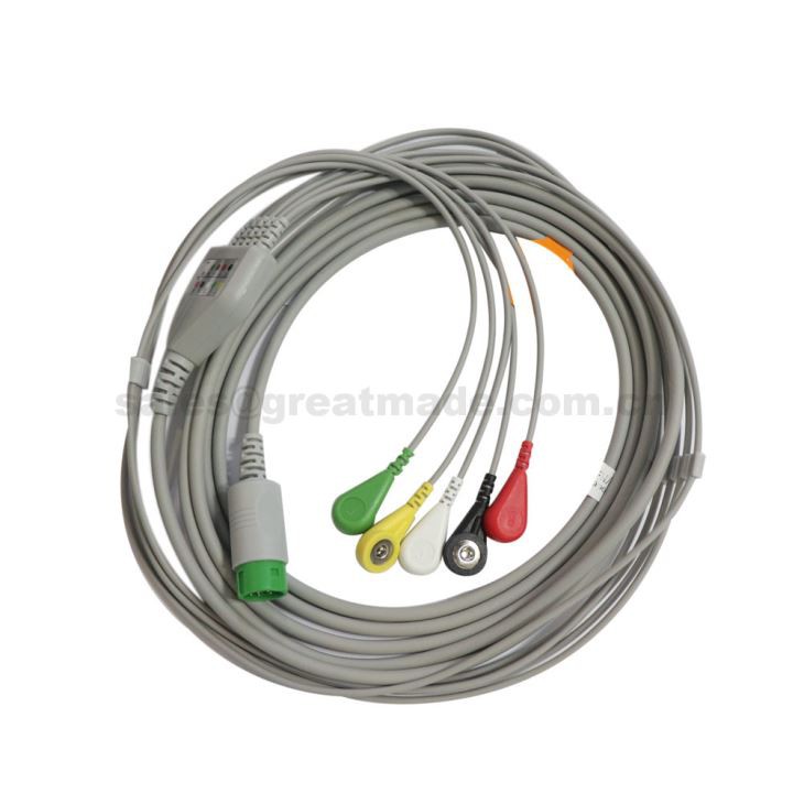 کابل ECG تک قطعه 5 سرب سپر سازگار با Mindray Beneview T5. T6 T8 ، PM5000 ، PM 6000 ، اسنپ ، IEC ، 12ft ، دور 12PIN