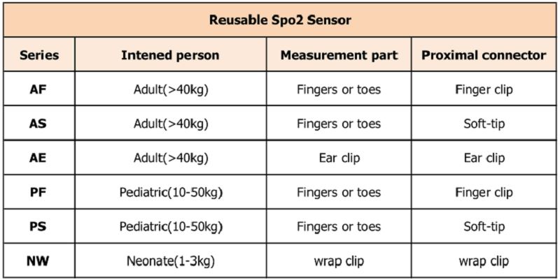 (سریال AF&AS) حسگر spo2 قابل استفاده مجدد greatmade با پالس اکسی متر سازگار برای نظارت مداوم غیر تهاجمی بر اشباع اکسیژن عملکردی هموگلوبین شریانی (SpO2) و ضربان نبض (PR) برای بزرگسالان با وزن بیشتر از 40 کیلوگرم متصل است.